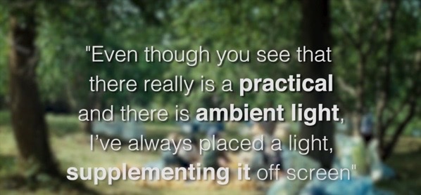 When asked about the choice and use of natural light, he answered like this: ‘That’s correct, but it’s still lit in some way. Even though you see that there really is a practical and there is ambient light, I’ve always placed a light, supplementing it off screen.’